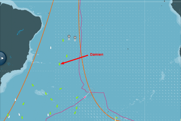 Le Cap Horn est passé depuis deux semaines, et j’ai remonté l’Atlantique jusque tout près de l’Anticyclone de Saint Hélène, celui qui m’avait arrêté à l’aller pour le passage de la première bouée. En choisissant une route Est jusqu’au 20ème méridien ouest, j’espère avoir fait le bon choix. Pour l’instant j’ai plutôt gagné des places, doucement mais sûrement. Bientôt je ferai cap plein Nord, en espérant que mon pari a été le bon. Damien est au large du Brésil, les premiers ont déjà passé l’Equateur, eux !
